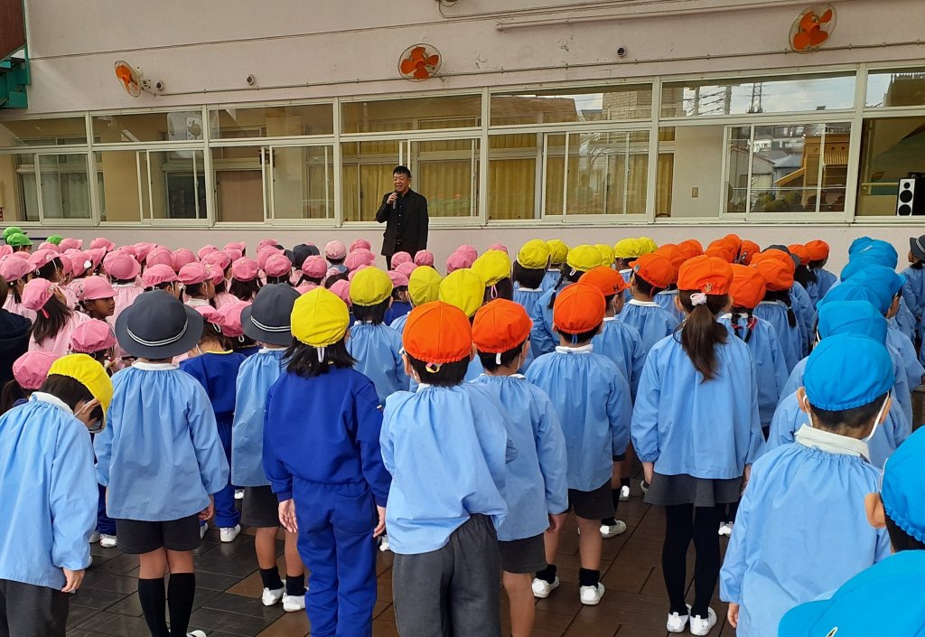 みんなで集まり、2学期の終業式